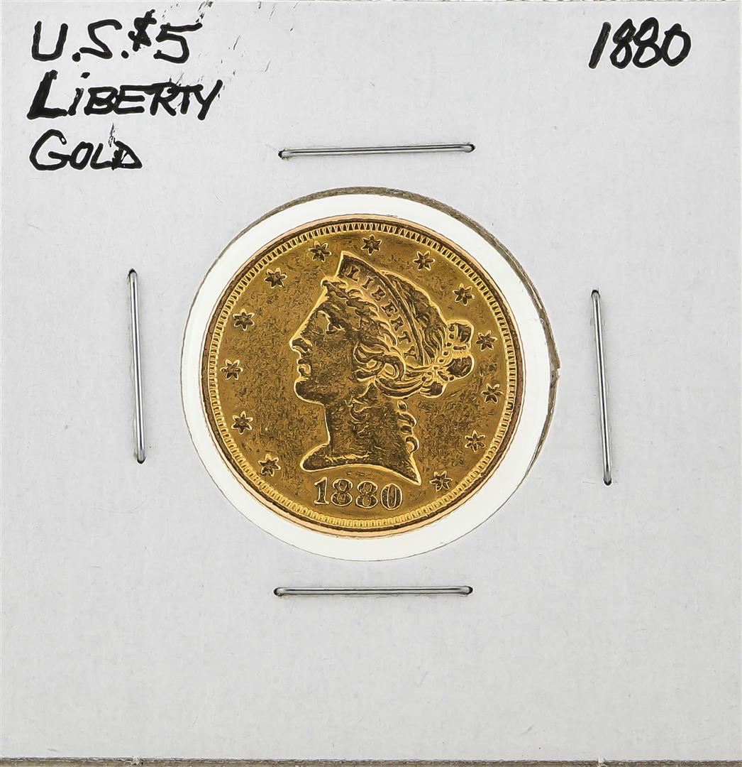 One 1880 $5 Liberty Head Half Eagle Gold Coin - Jewelry.