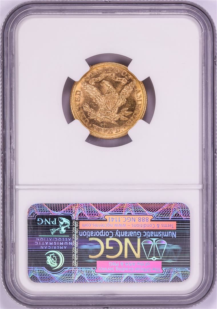 One 1880 $5 Liberty Head Half Eagle Gold Coin NGC MS62. NGC Certified.