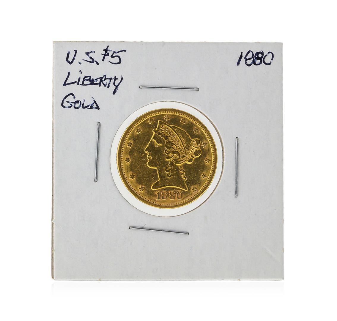One 1880 $5 Liberty Head Half Eagle Gold Coin.