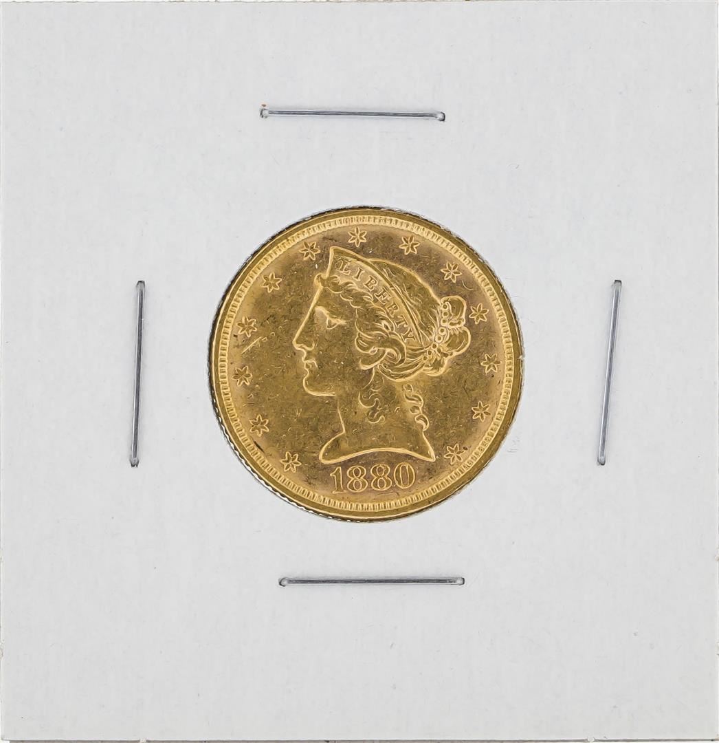 One 1880 $5 Liberty Head Half Eagle Gold Coin.