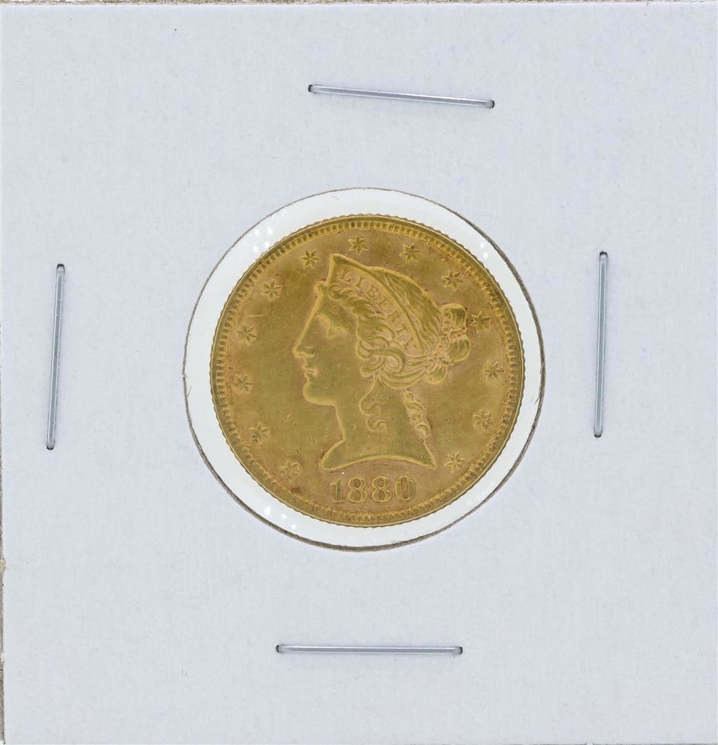 One 1880 $5 Liberty Head Half Eagle Gold Coin.