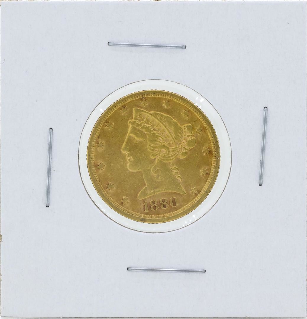 One 1880 $5 Liberty Head Half Eagle Gold Coin.