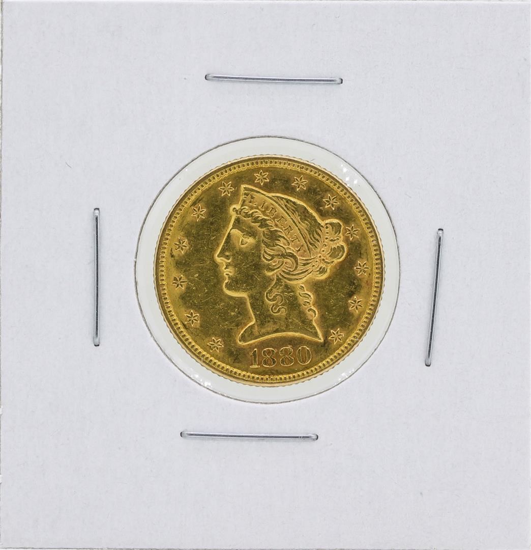 One 1880 $5 Liberty Head Half Eagle Gold Coin.