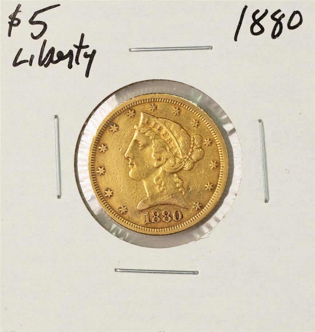 One 1880 $5 Liberty Head Half Eagle Gold Coin.