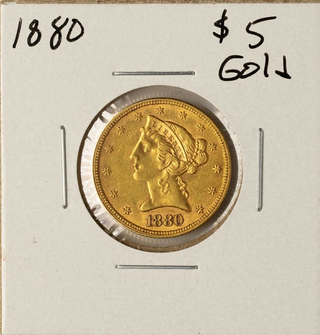 One 1880 $5 Liberty Head Half Eagle Gold Coin.