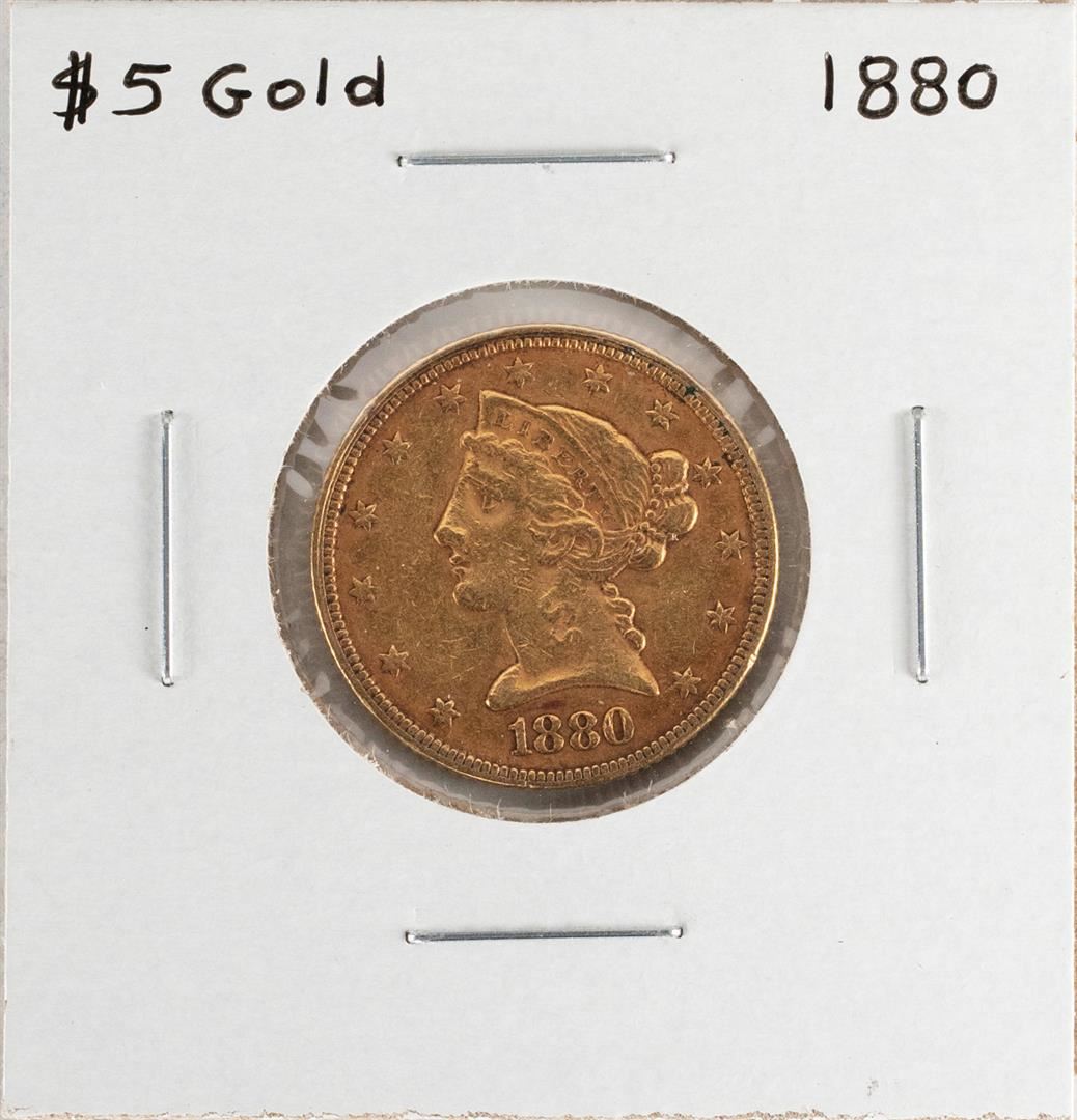One 1880 $5 Liberty Head Half Eagle Gold Coin.