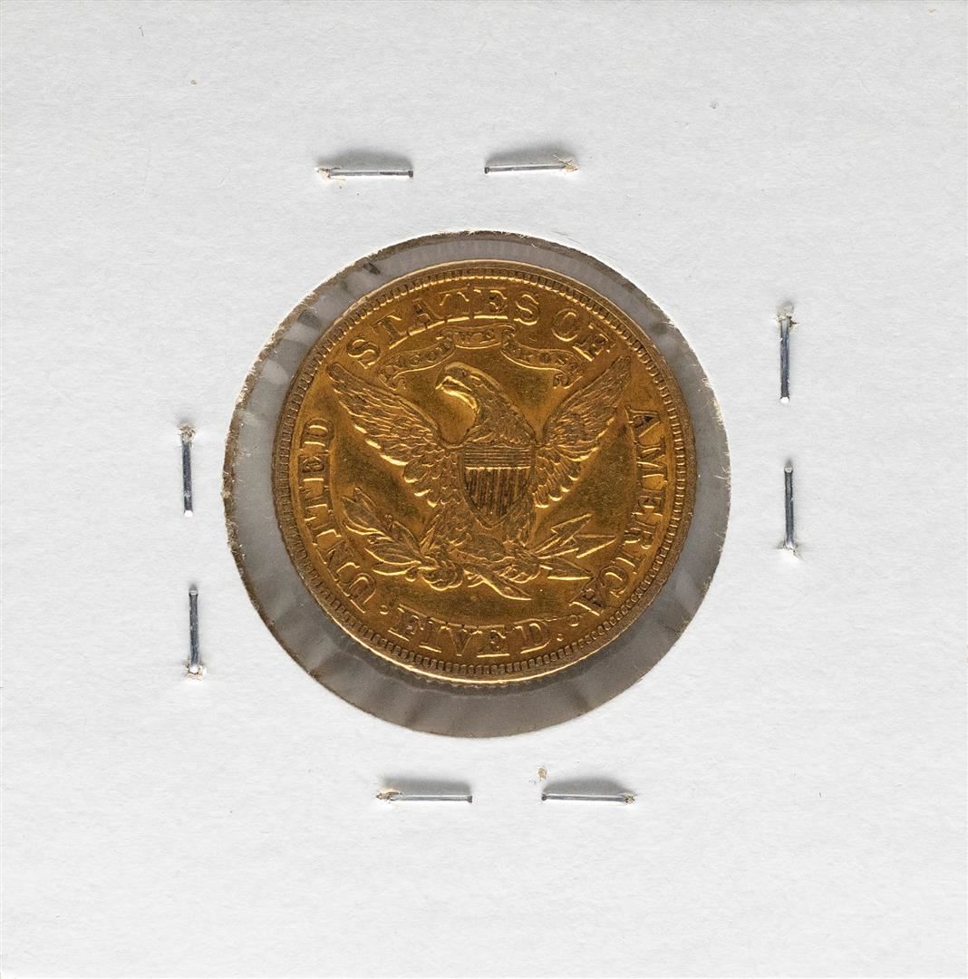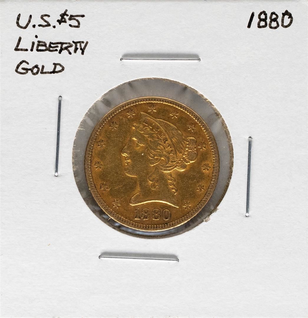 One 1880 $5 Liberty Head Half Eagle Gold Coin.