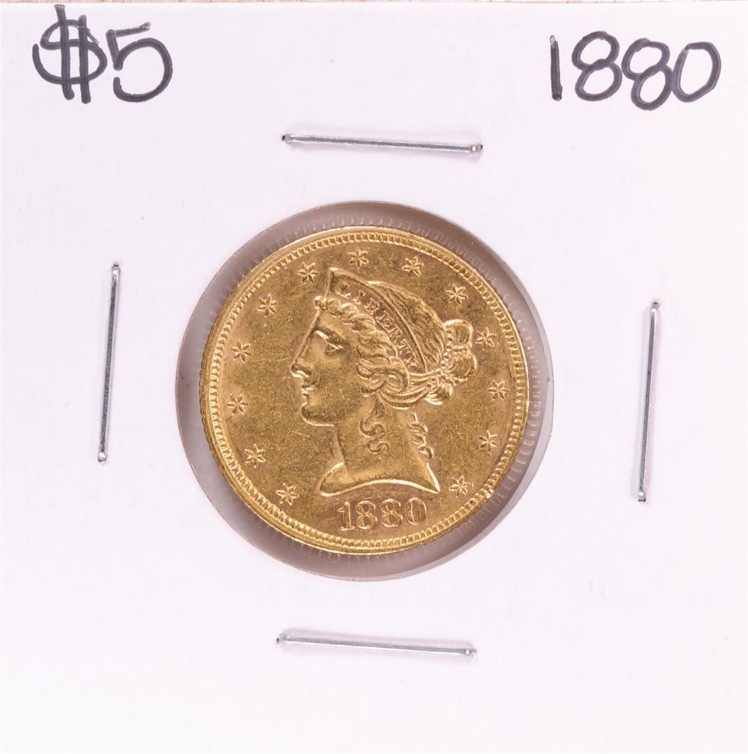 One 1880 $5 Liberty Head Half Eagle Gold Coin.