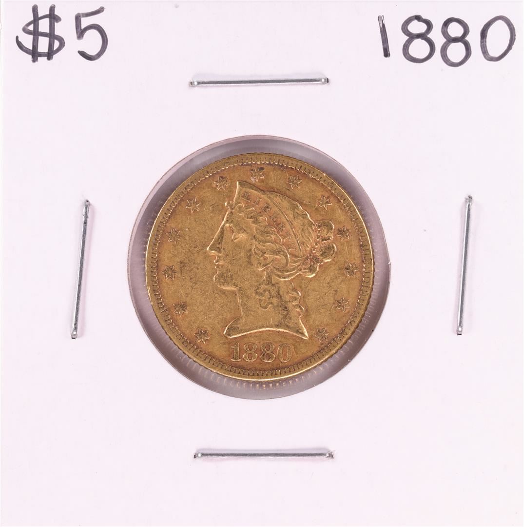 One 1880 $5 Liberty Head Half Eagle Gold Coin.