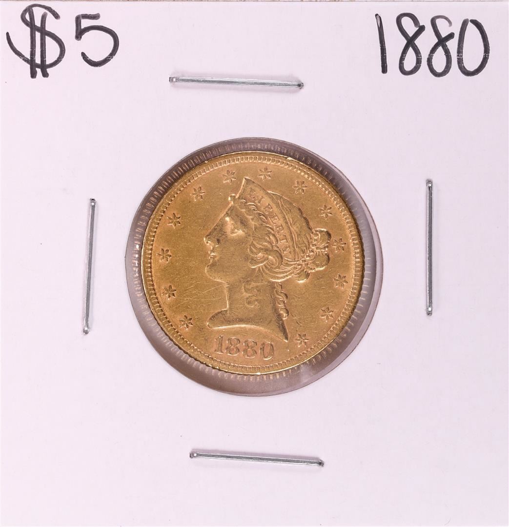 One 1880 $5 Liberty Head Half Eagle Gold Coin.