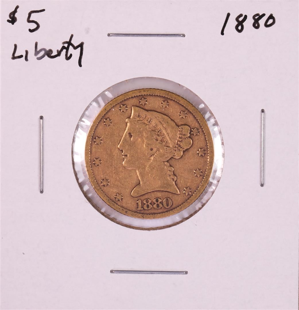 One 1880 $5 Liberty Head Half Eagle Gold Coin.