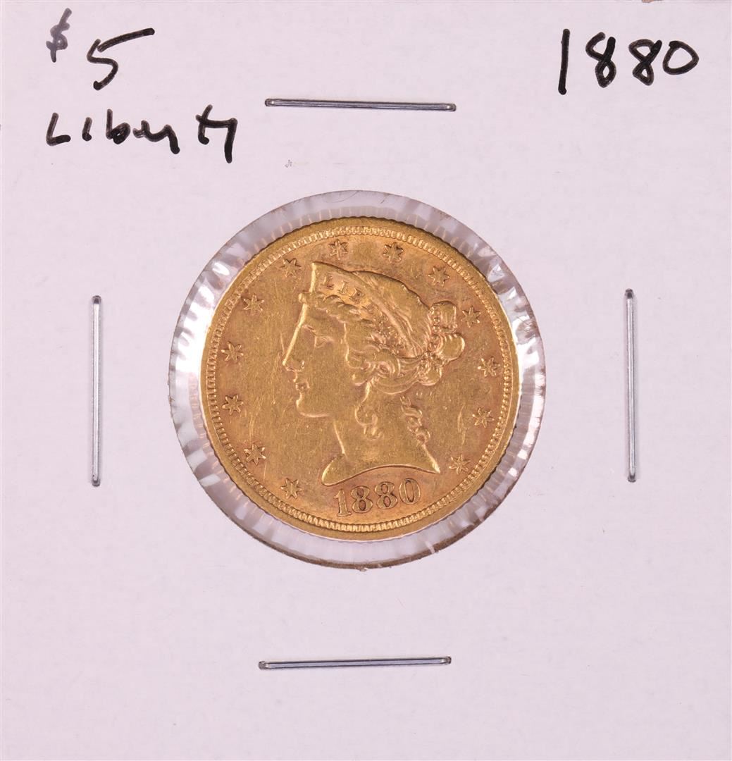 One 1880 $5 Liberty Head Half Eagle Gold Coin.