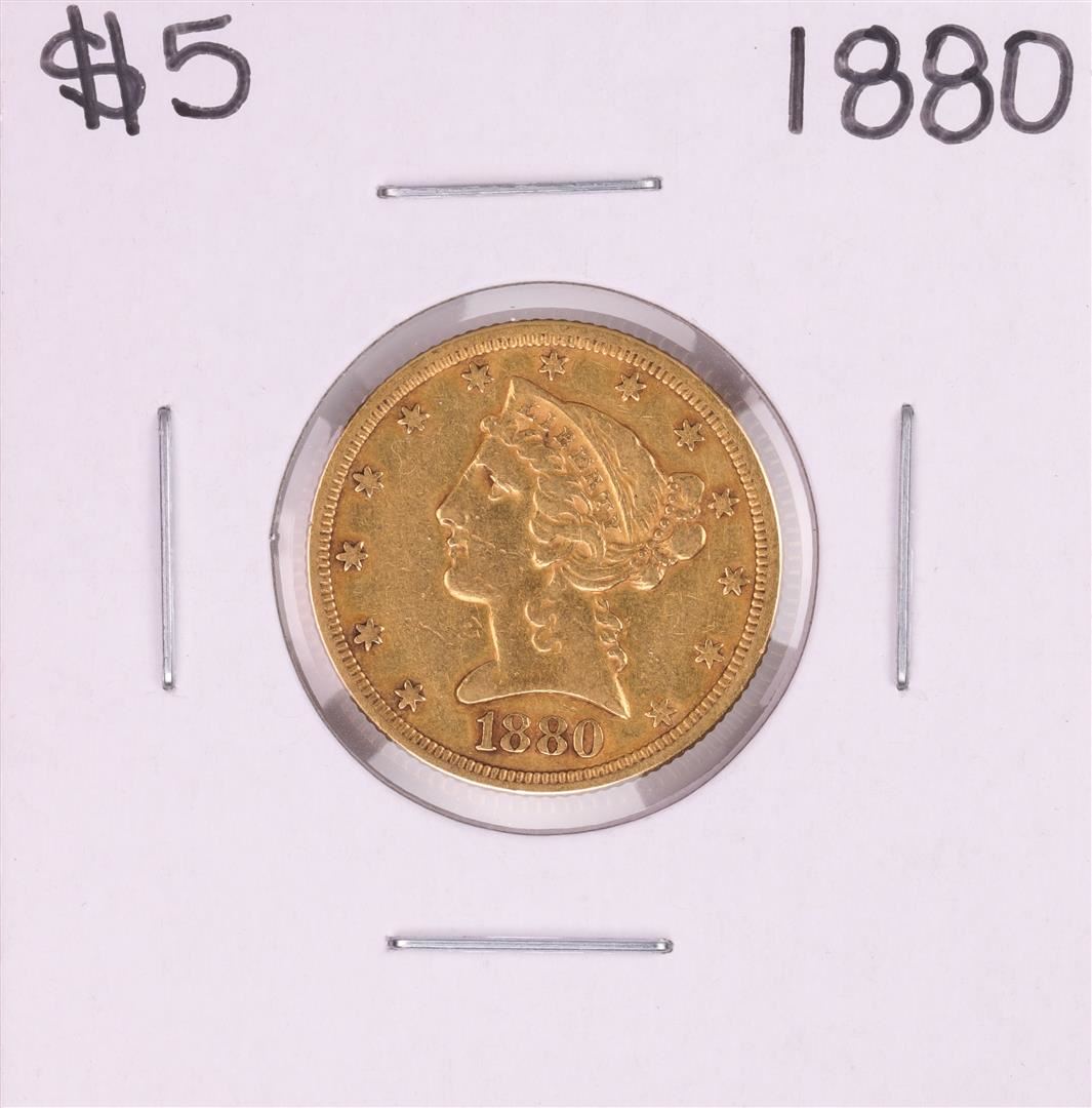 One 1880 $5 Liberty Head Half Eagle Gold Coin.
