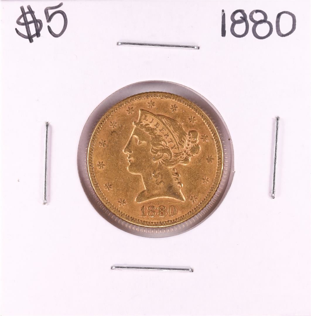 One 1880 $5 Liberty Head Half Eagle Gold Coin.
