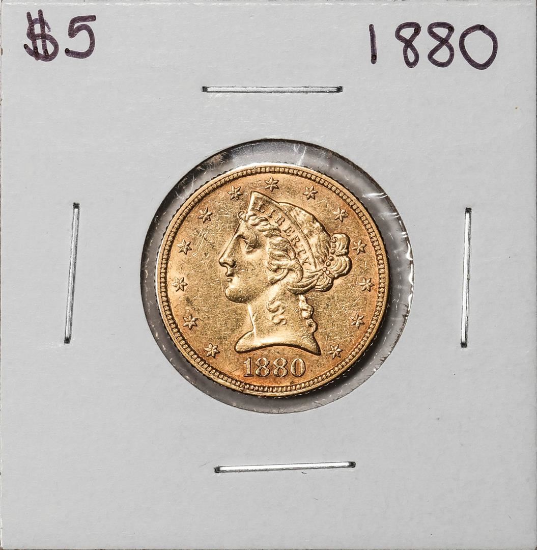 One 1880 $5 Liberty Head Half Eagle Gold Coin.
