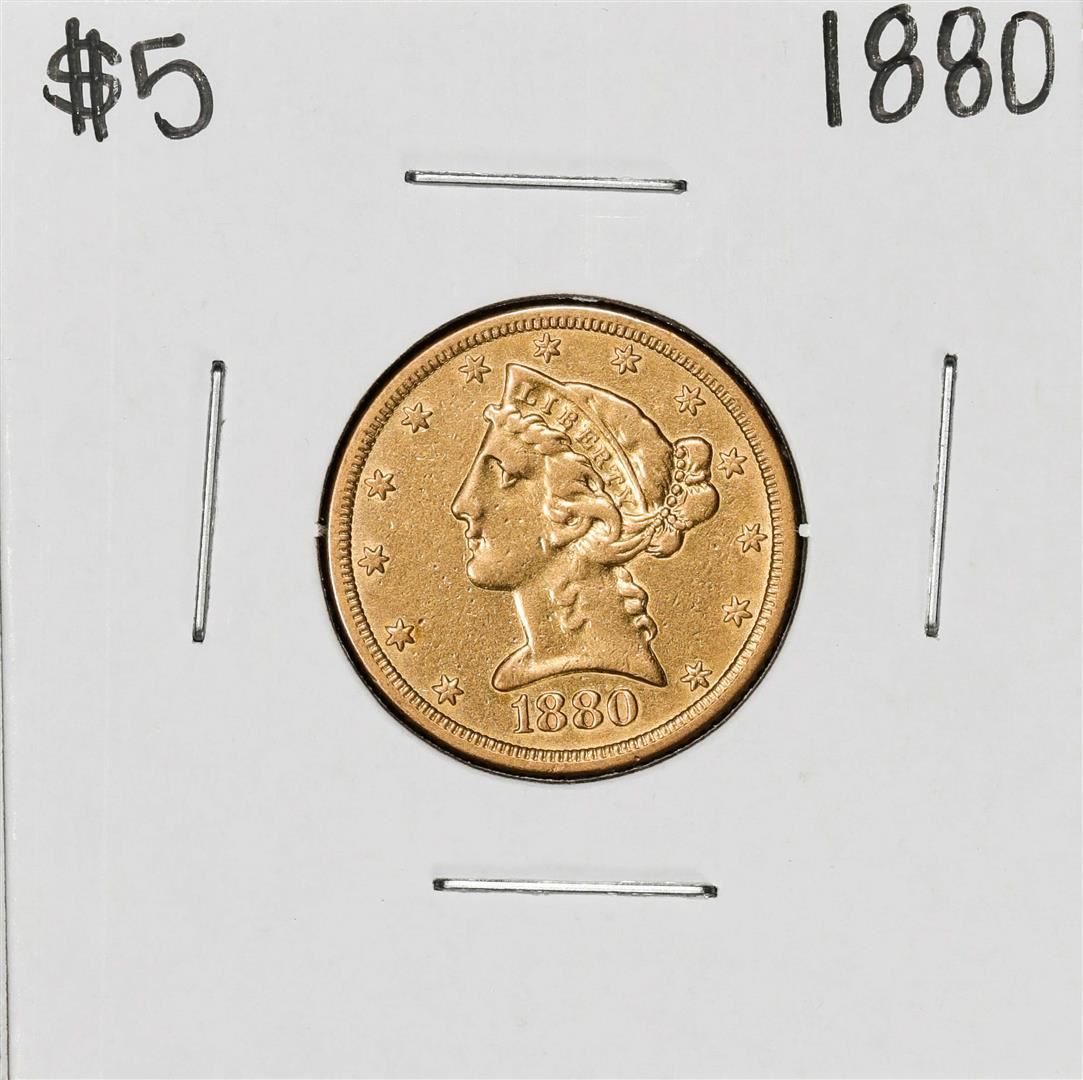 One 1880 $5 Liberty Head Half Eagle Gold Coin.