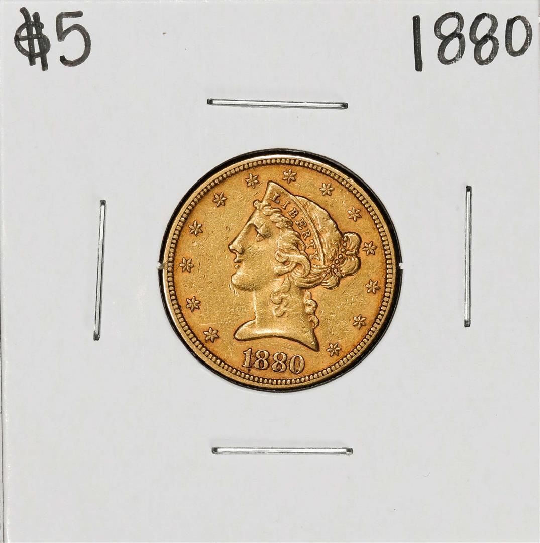 One 1880 $5 Liberty Head Half Eagle Gold Coin.
