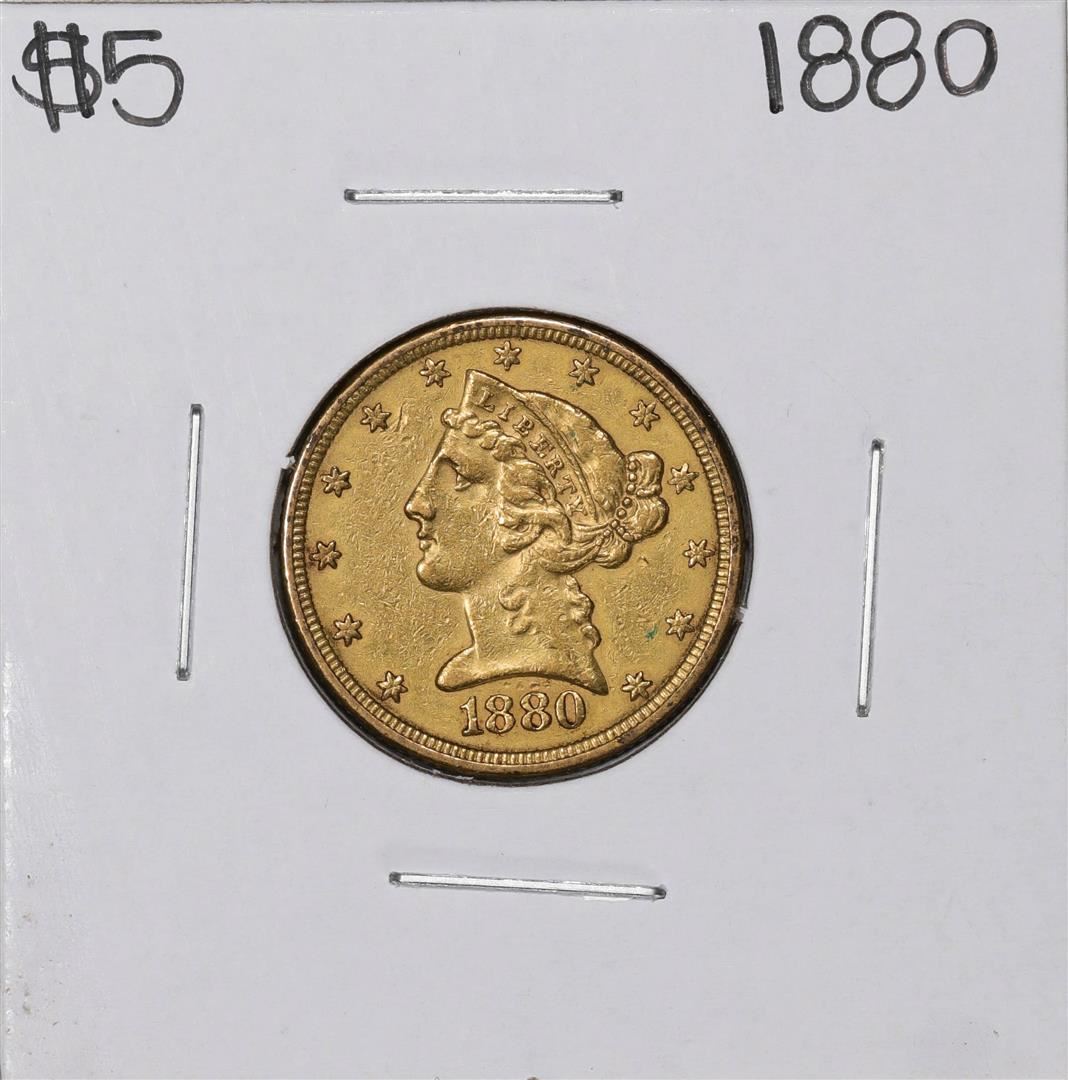 One 1880 $5 Liberty Head Half Eagle Gold Coin.