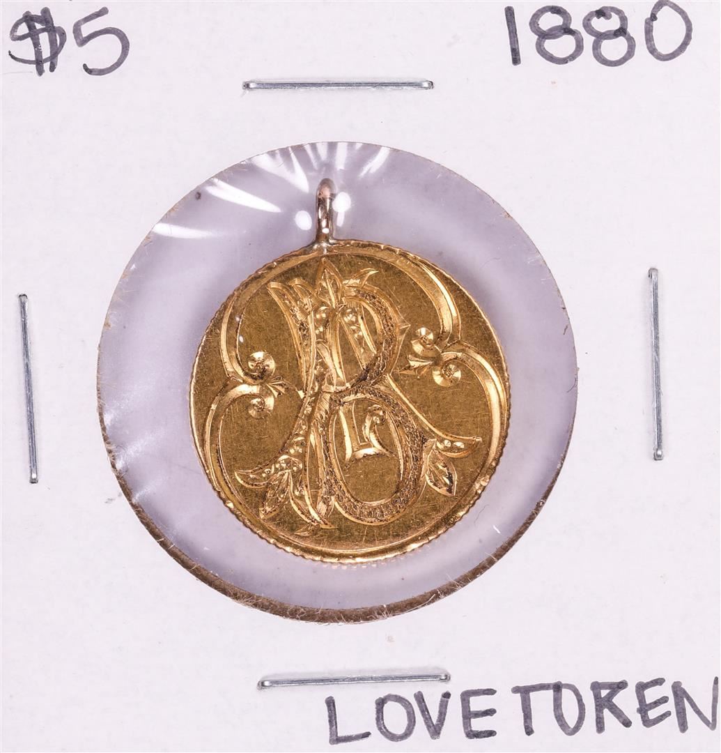 One 1880 $5 Liberty Head Half Eagle Love Token Coin Pendant.