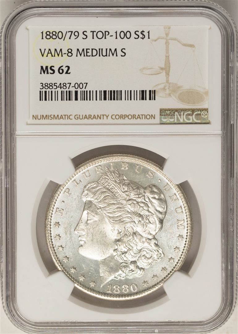 1880/79-S VAM-8 Medium S $1 Morgan Silver Dollar Coin NGC MS62 Top 100