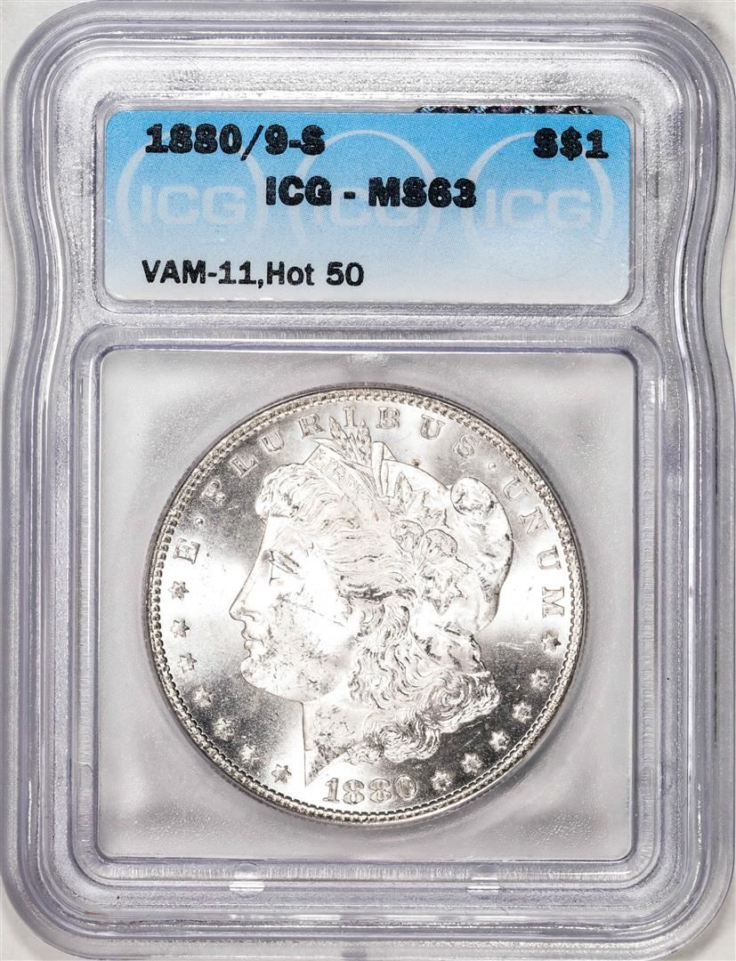 1880/9-S VAM-11 Hot 50 $1 Morgan Silver Dollar Coin ICG MS63