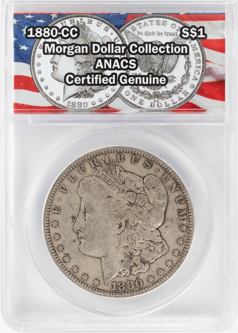 One 1880-CC $1 Morgan Silver Dollar Coin ANACS Certified Genuine. ANACS Certified.