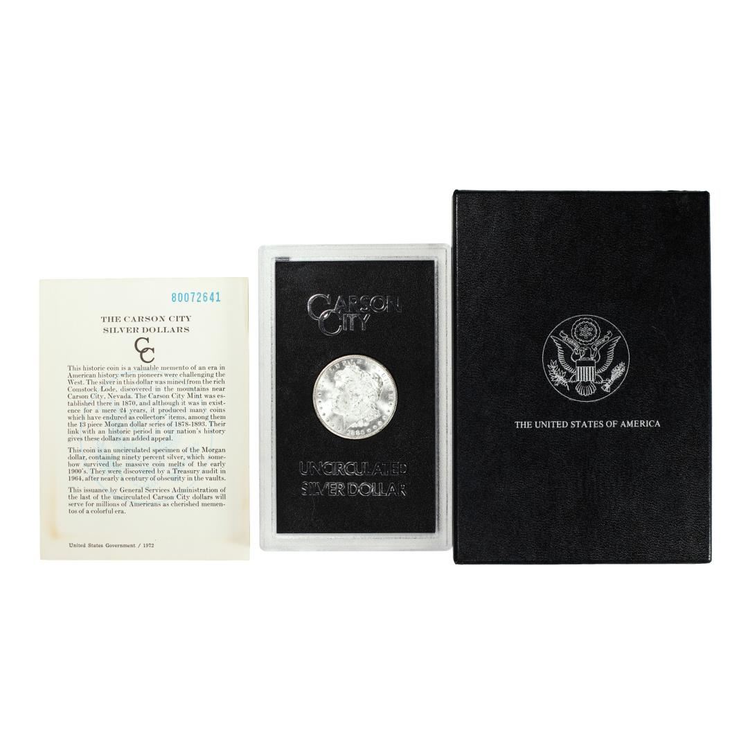 One 1880-CC $1 Morgan Silver Dollar Coin GSA Hoard Uncirculated w/Box & COA.