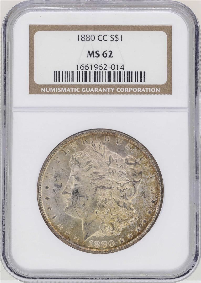 One 1880-CC $1 Morgan Silver Dollar Coin NGC MS62. NGC Certified.