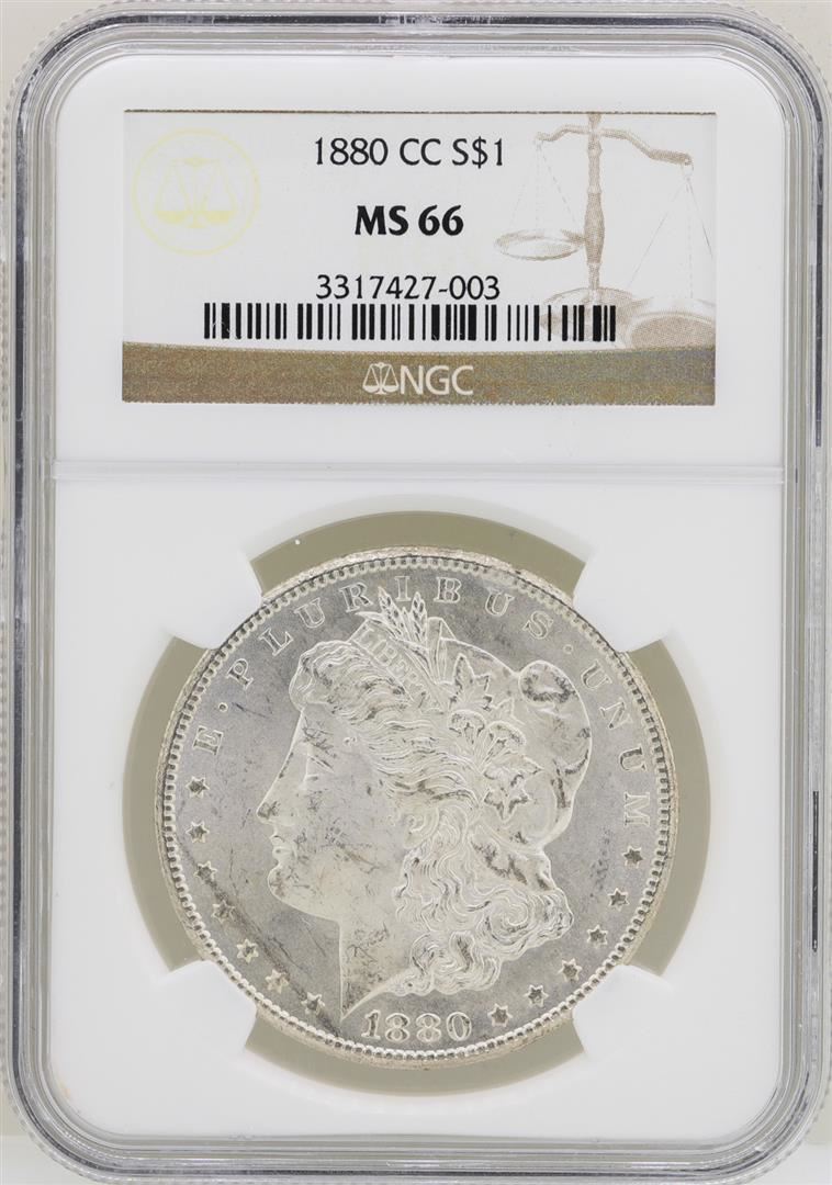 One 1880-CC $1 Morgan Silver Dollar Coin NGC MS66. NGC Certified.