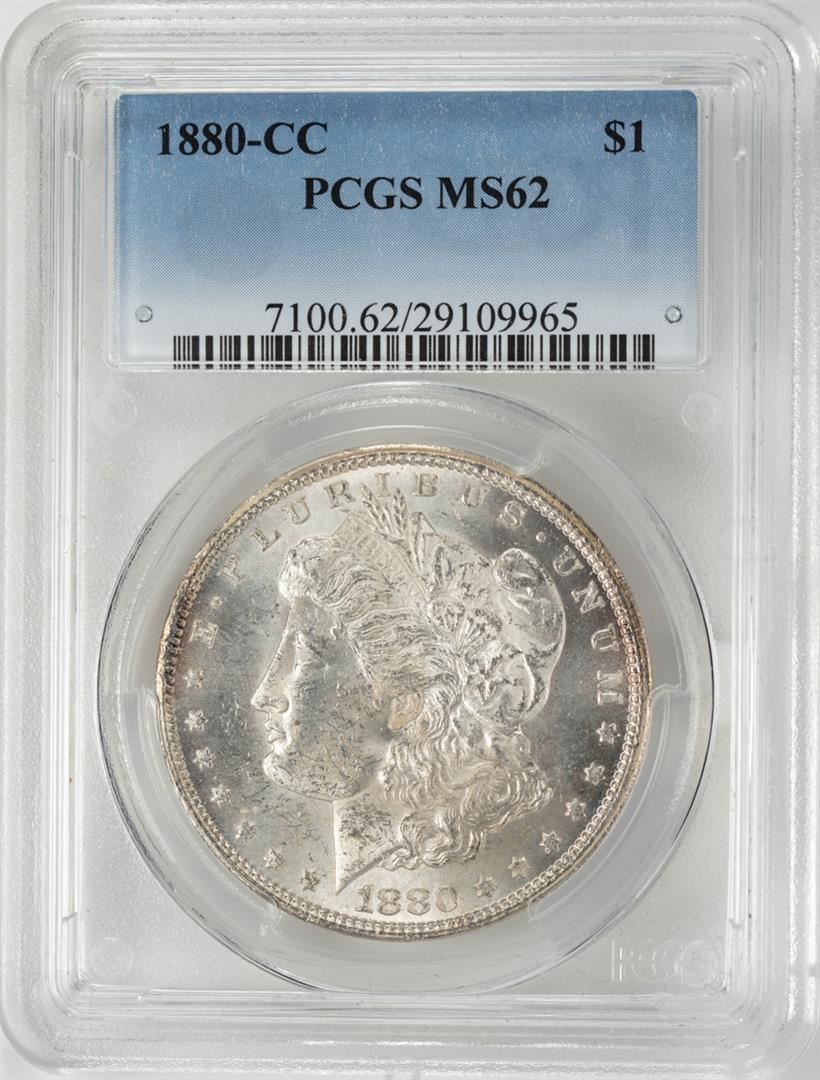 One 1880-CC $1 Morgan Silver Dollar Coin PCGS MS62. PCGS Graded.