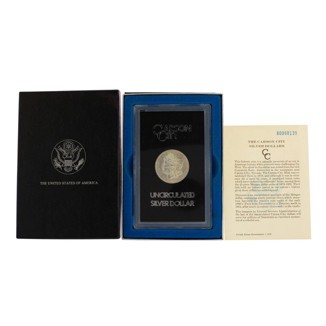 One 1880-CC $1 Morgan Silver Dollar Coin Uncirculated GSA Hoard w/ Box & COA.
