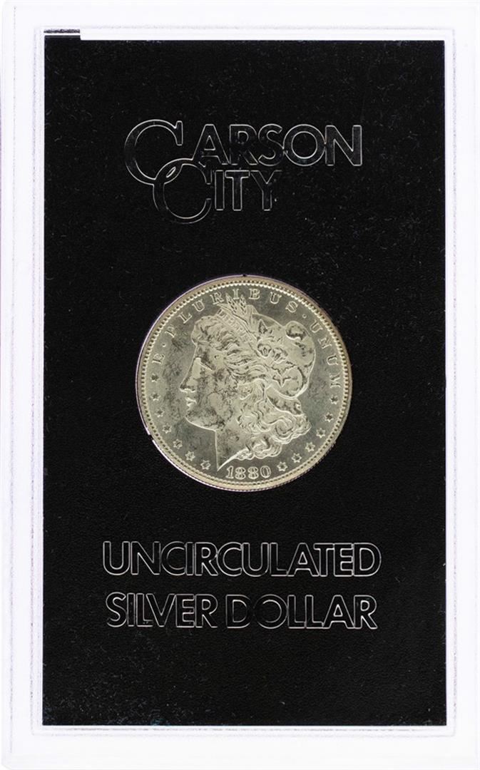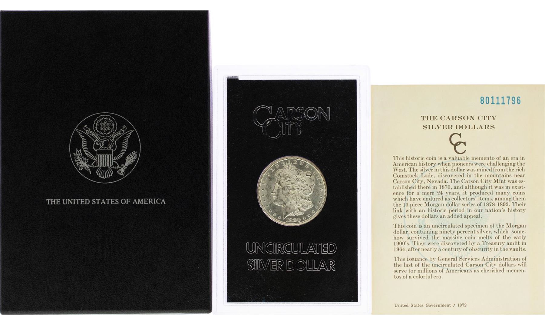 One 1880-CC $1 Morgan Silver Dollar Coin Uncirculated GSA w/ Box & COA.