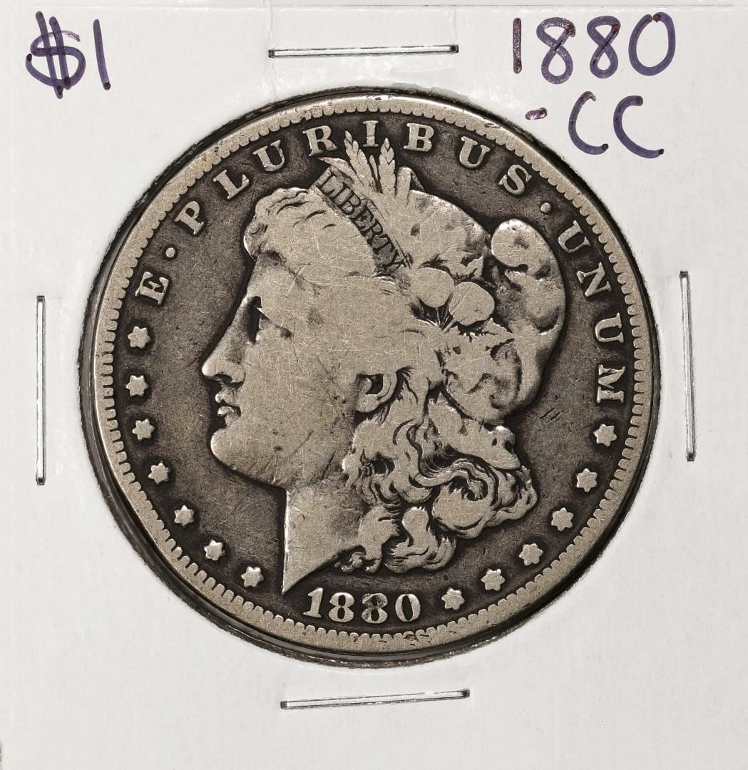 One 1880-CC $1 Morgan Silver Dollar Coin.