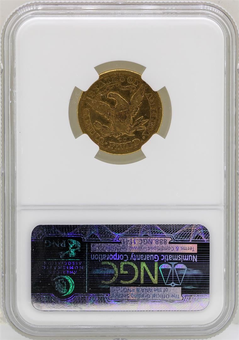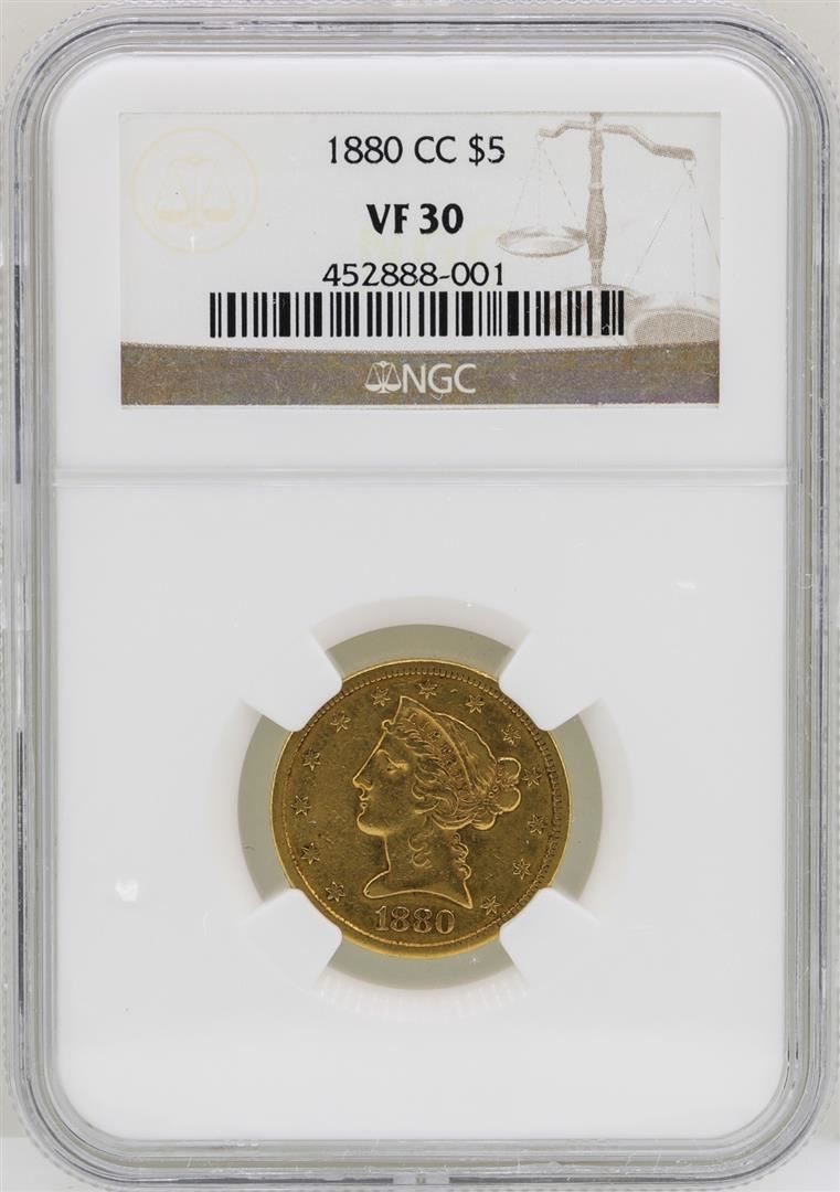 One 1880-CC $5 Liberty Head Half Eagle Gold Coin NGC VF30. NGC Certified.