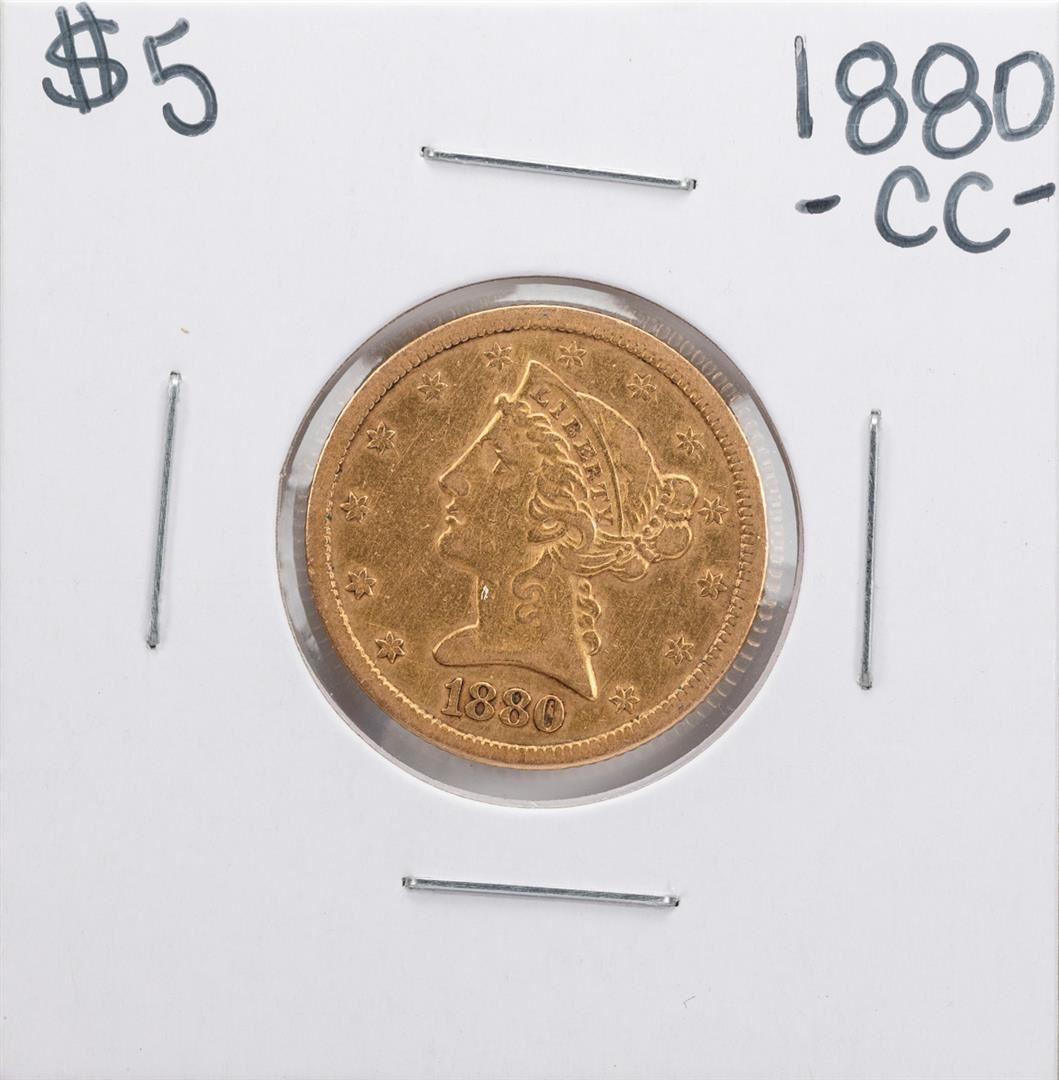 One 1880-CC $5 Liberty Head Half Eagle Gold Coin.