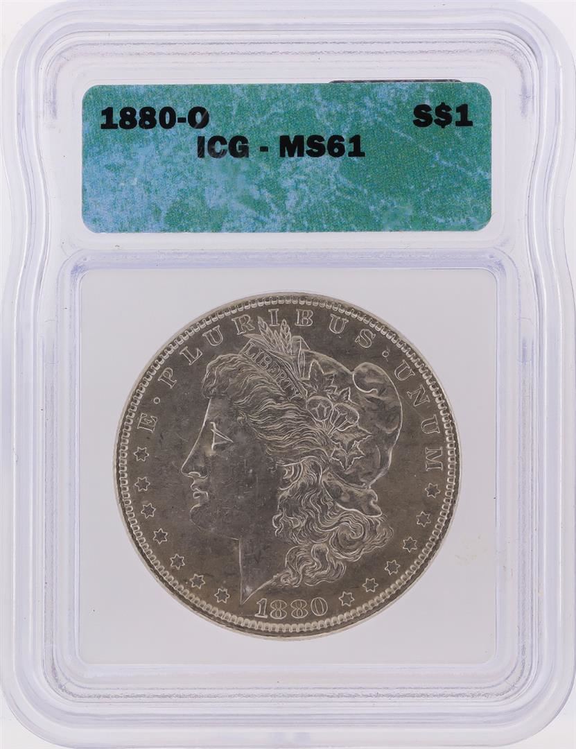 One 1880-O $1 Morgan Silver Dollar Coin ICG Graded MS61. ICG Certified.