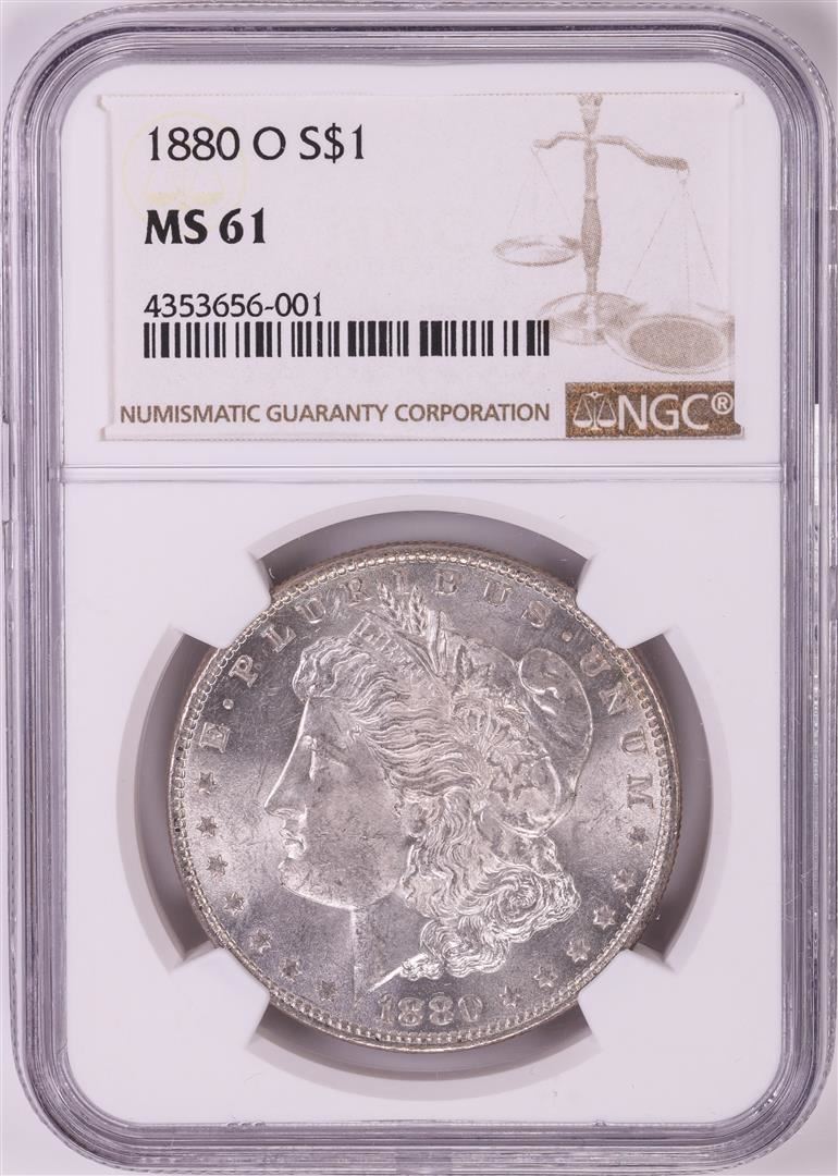 One 1880-O $1 Morgan Silver Dollar Coin NGC MS61. NGC Certified.