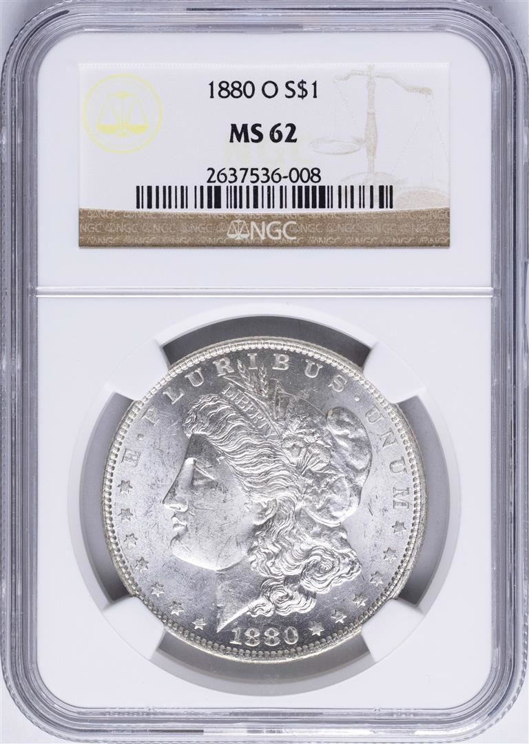One 1880-O $1 Morgan Silver Dollar Coin NGC MS62. NGC Certified.