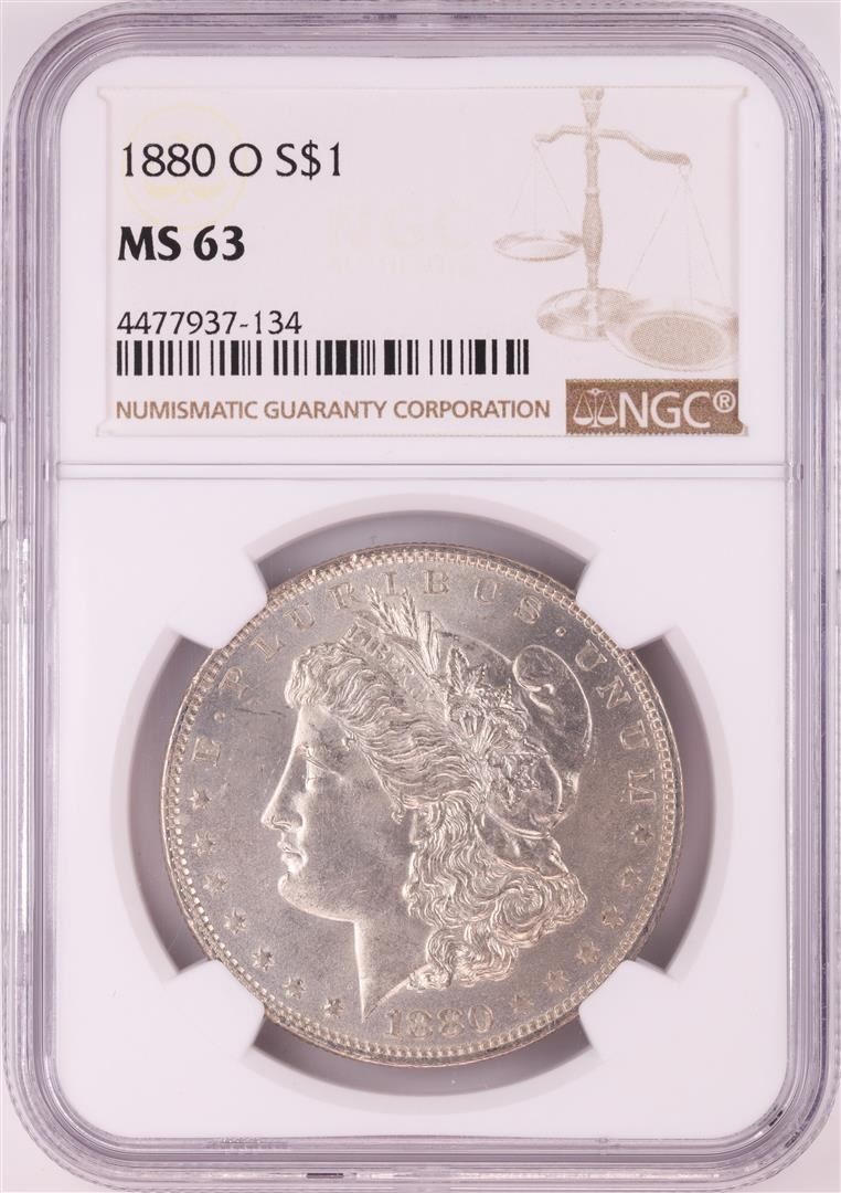 One 1880-O $1 Morgan Silver Dollar Coin NGC MS63. NGC Certified.