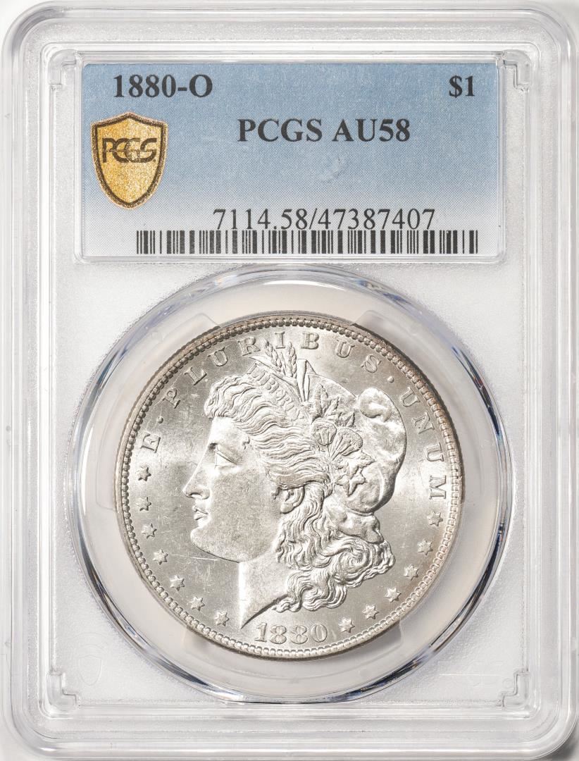 One 1880-O $1 Morgan Silver Dollar Coin PCGS AU58. PCGS Graded.