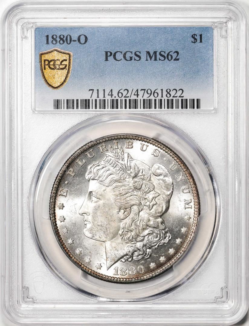 One 1880-O $1 Morgan Silver Dollar Coin PCGS MS62. PCGS Graded.