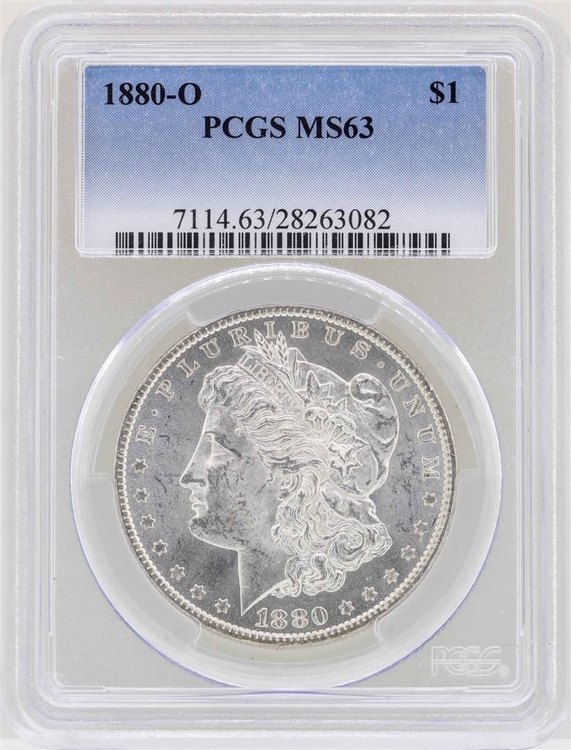 One 1880-O $1 Morgan Silver Dollar Coin PCGS MS63. PCGS Graded.