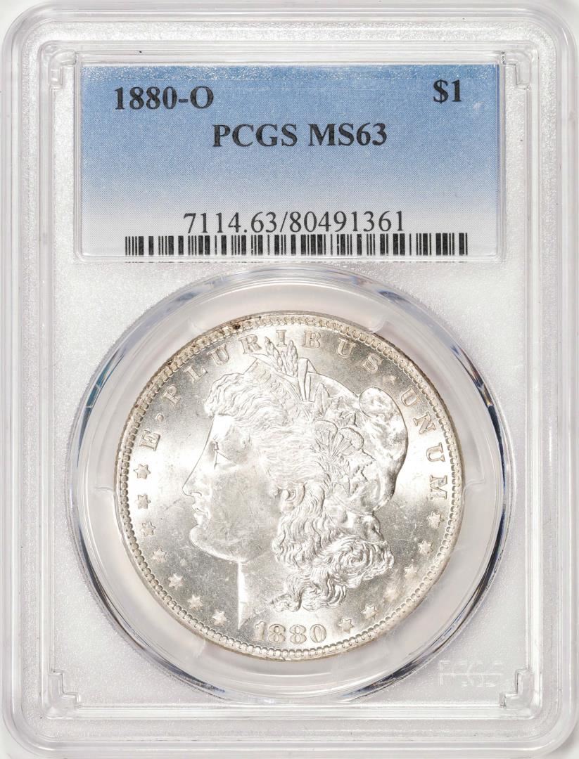 One 1880-O $1 Morgan Silver Dollar Coin PCGS MS63. PCGS Graded.