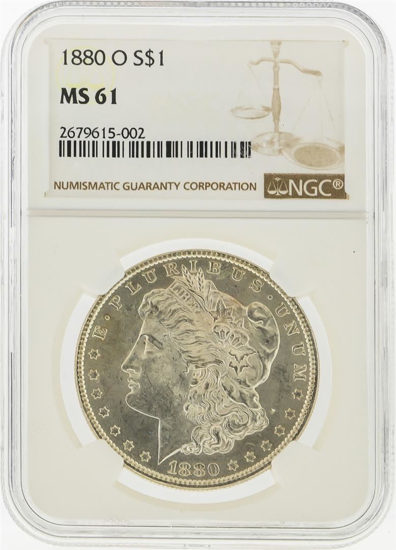 One 1880-O $1 Morgan Silver Dollar NGC Graded MS61. NGC Certified.