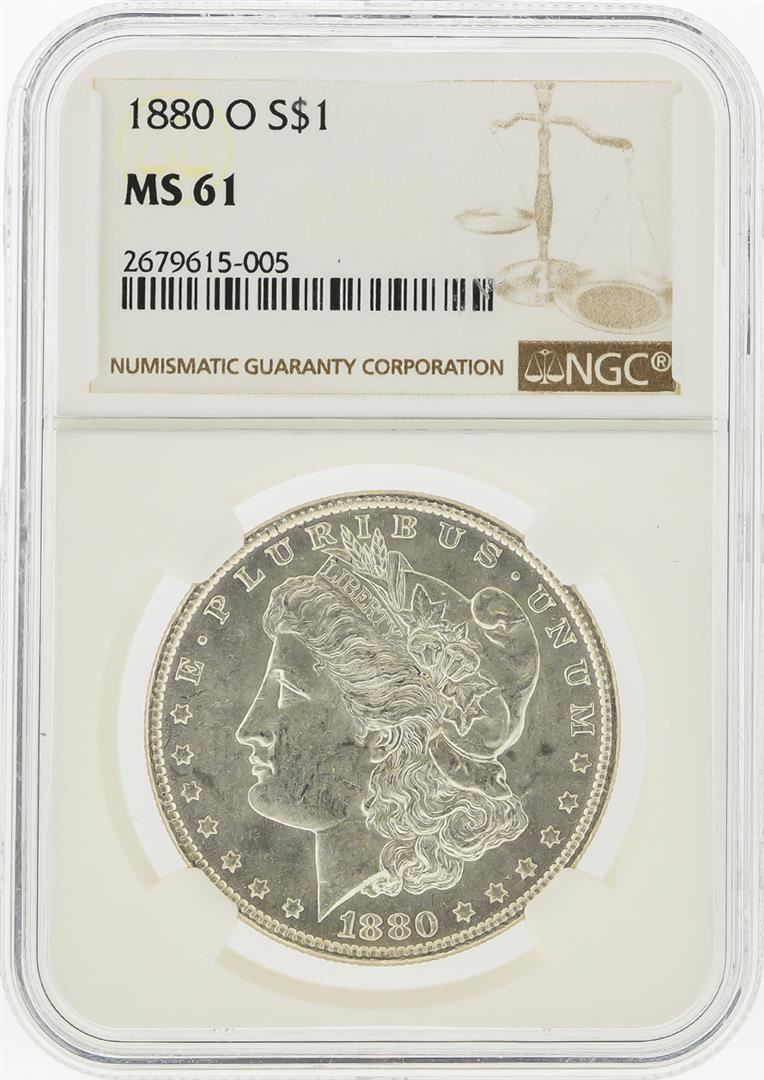 One 1880-O $1 Morgan Silver Dollar NGC Graded MS61. NGC Certified.