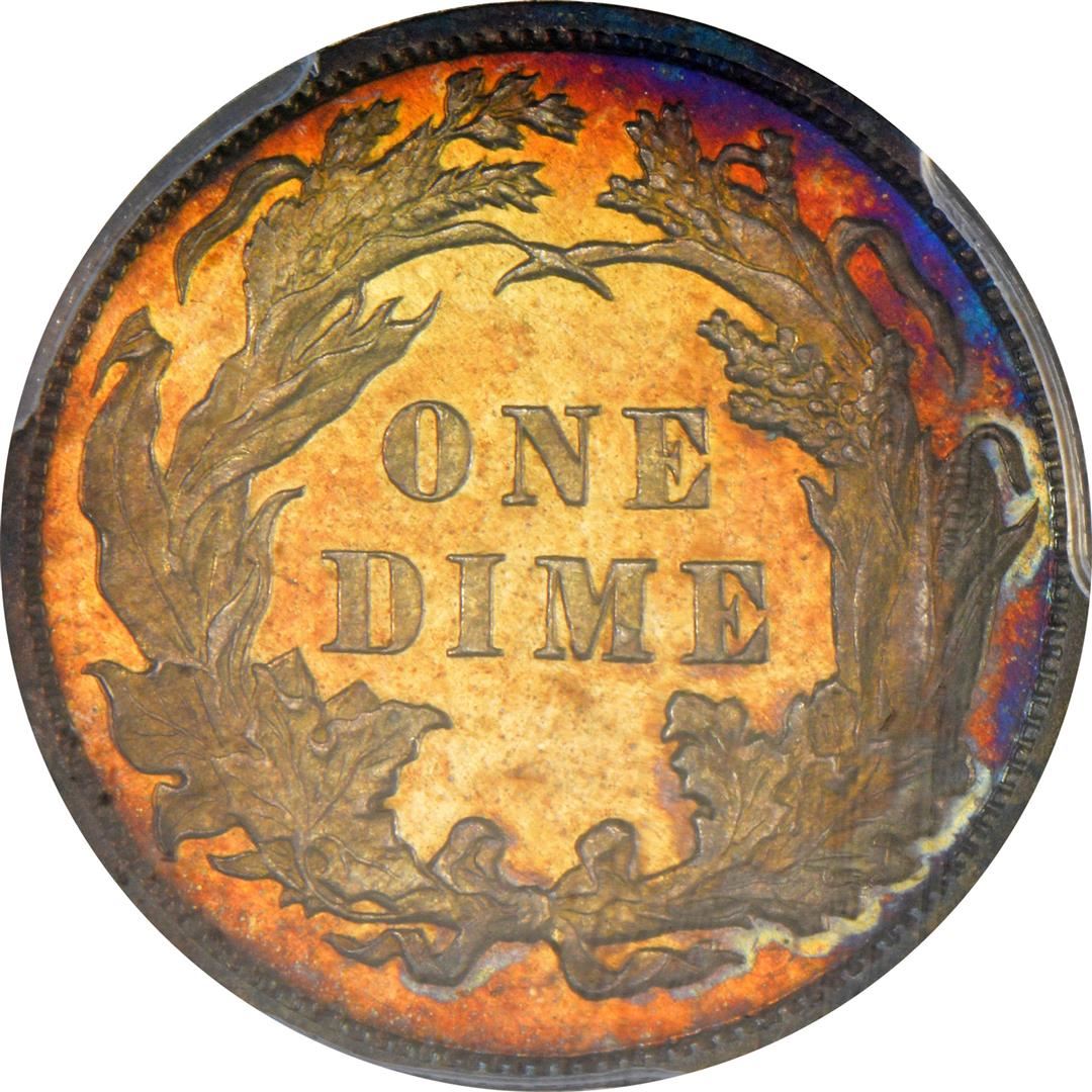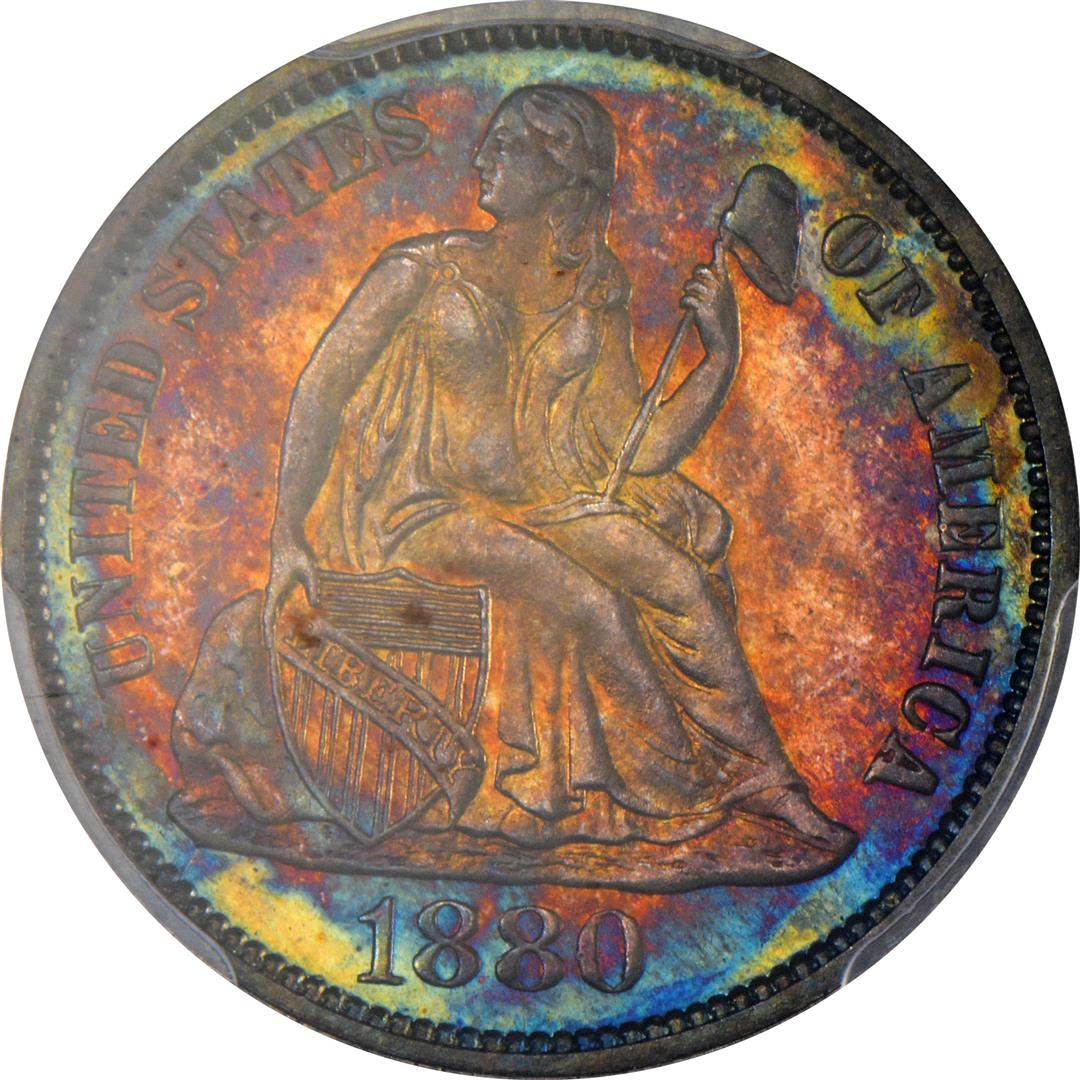 One 1880 Proof Seated Liberty Dime Coin PCGS PR66 CAC Amazing Toning. PCGS Graded.
