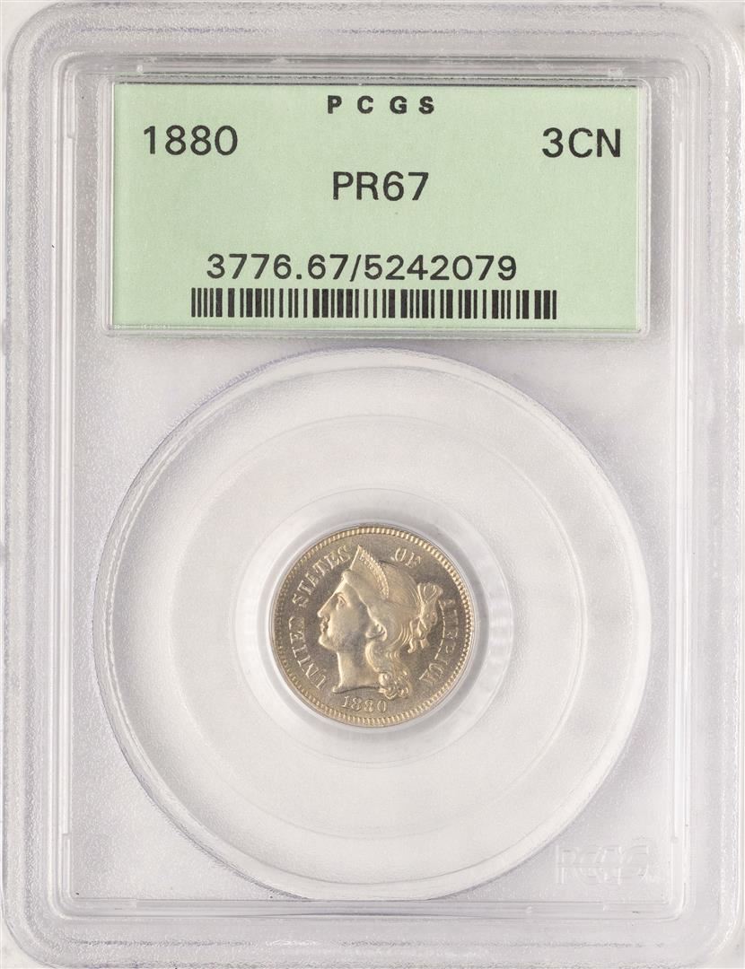 One 1880 Proof Three Cent Nickel Coin PCGS PR67 Old Green Holder. PCGS Graded.