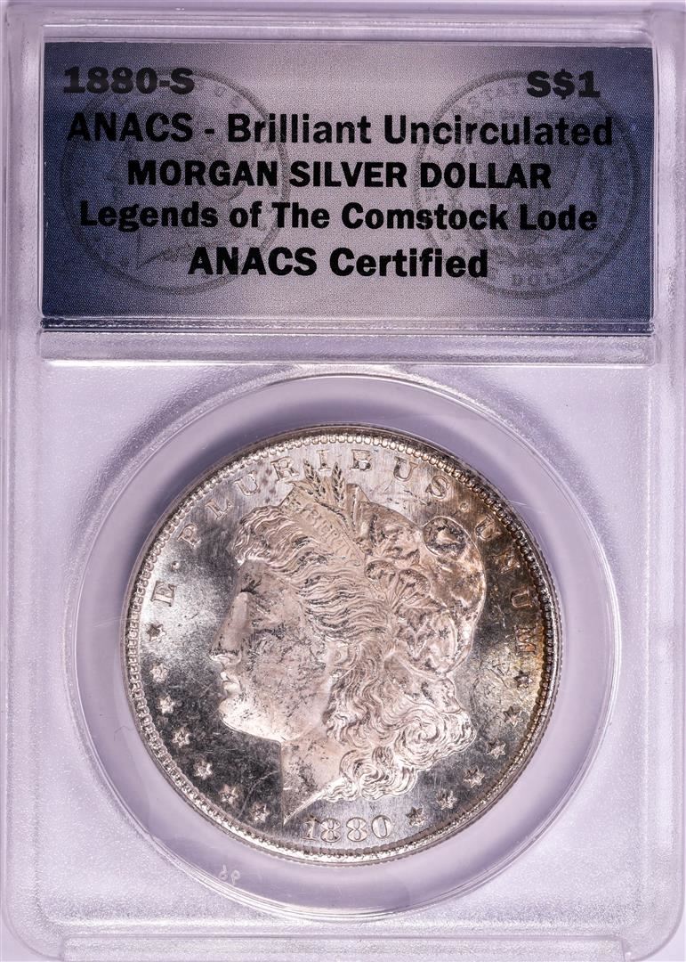One 1880-S $1 Morgan Silver Dollar Coin ANACS Brilliant Uncirculated. ANACS Certified.