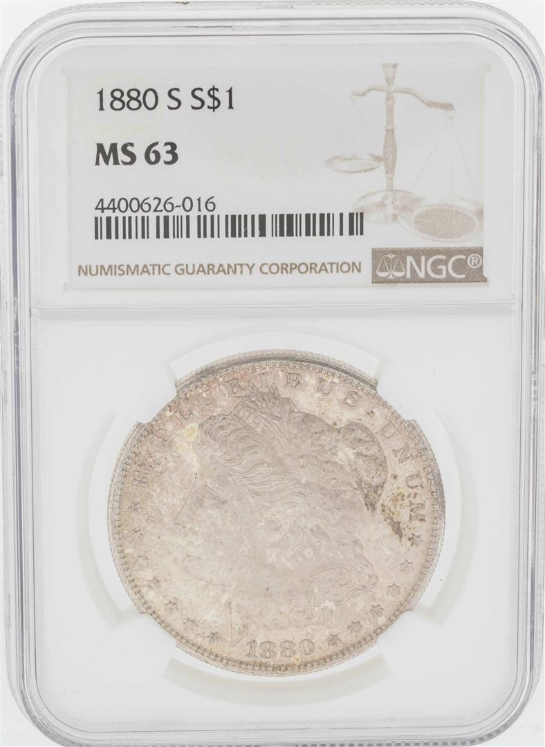 One 1880-S $1 Morgan Silver Dollar Coin NGC MS63. NGC Certified.