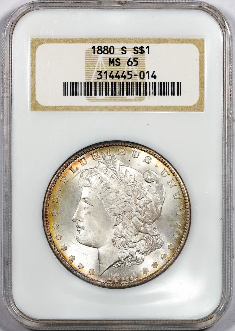 1880-S $1 Morgan Silver Dollar Coin NGC MS65 Nice Toning Old Fatty Holder